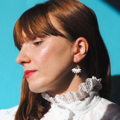 Kolczyki Lunula wykonane z mosiądzu i stali chirurgicznej. Pokryte jednostronnie emalią.