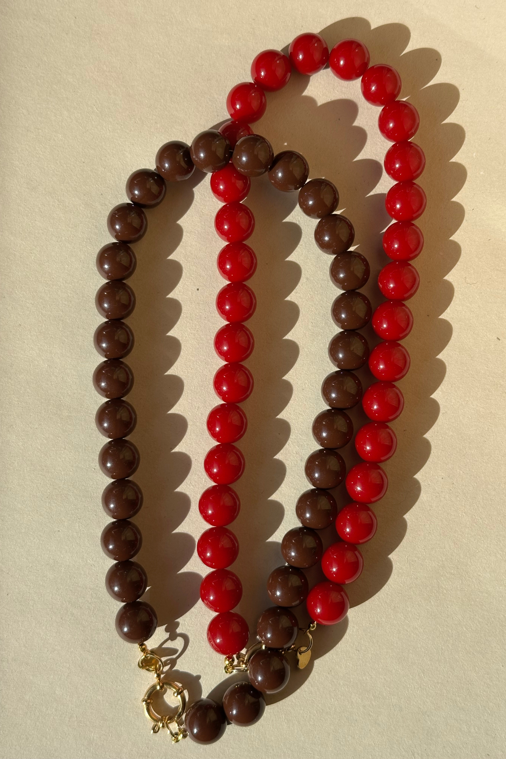 Naszyjnik z korali akrylowych w kolorze brązowym w rozmiarze 14mm zapięcie ze stali chirurgicznej.